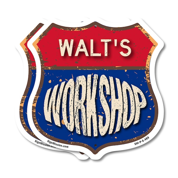 Add a Fun, Personalized Touch to Your Workshop with SignMission's Custom Shield-Shaped Signs Make your Workshop stand out with a sign that's not just eye-catching, but also full of personality! Our shield-shaped signs are the perfect way to add a touch of fun and style to your space. Featuring your name and a sleek, polished design, these signs are crafted to bring a modern, professional vibe to any Workshop, workshop, or man cave. With their bold look and durable commercial-grade plastic construction, they'll grab attention and give your space that extra bit of flair for years to come. Bring Modern Durability to Your Workshop Our shield-shaped signs aren't just stylish-they're designed with long-lasting, commercial-grade plastic that ensures both a sleek finish and unbeatable durability. Perfect for any indoor or outdoor space, these signs are resistant to cracking, fading, and weather damage. They come with pre-drilled holes for easy mounting, so you can display them effortlessly wherever they look best. Give your Workshop a polished and timeless appeal with a sign that combines charm and toughness. Our shield-shaped signs are expertly crafted to bring both style and resilience to your space while featuring your personalized touch.
