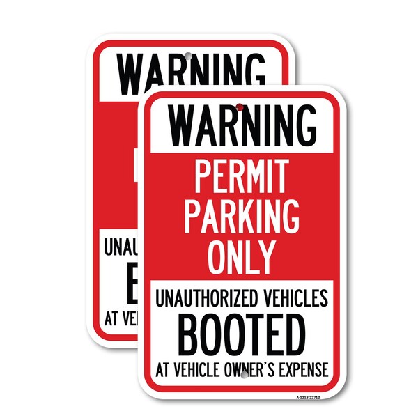 Warning Permit Parking Only Unauthorized Vehicles Boote, 12'' X 18'', Heavy Gauge Aluminum, 2PK