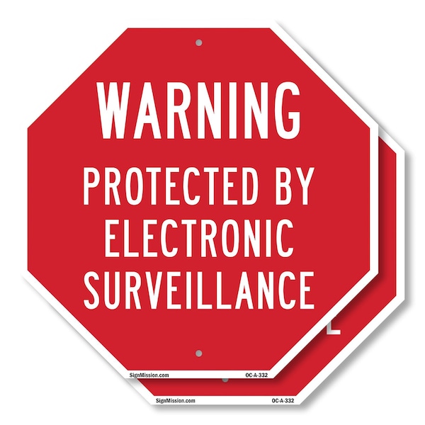 Warning Protected by Electronic Sur, 18 inch X 18 inch, Plastic Sign, 2PK