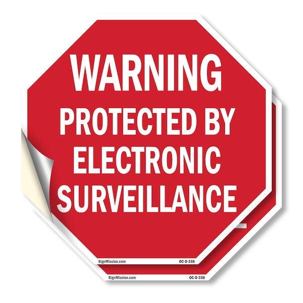 Warning Protected by Electronic Sur, 4 inch X 4 inch, Vinyl Decal, 2PK