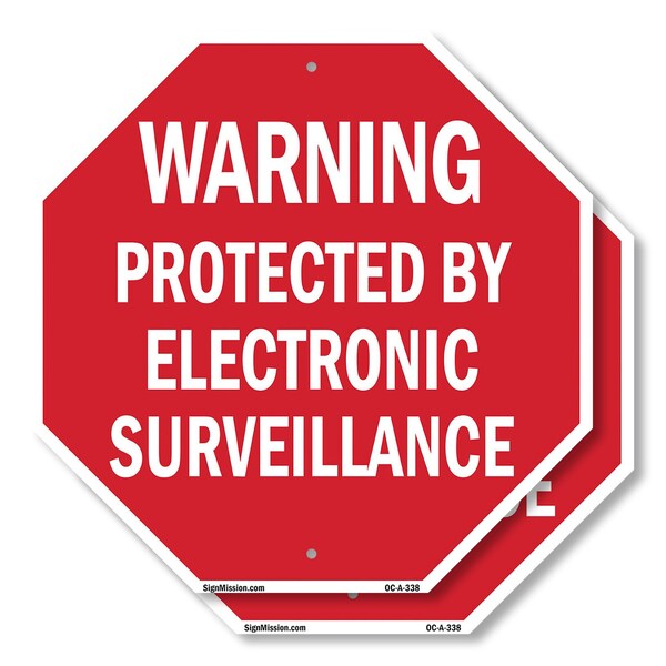 Warning Protected by Electronic Sur, 6 inch X 6 inch, Plastic Sign, 2PK