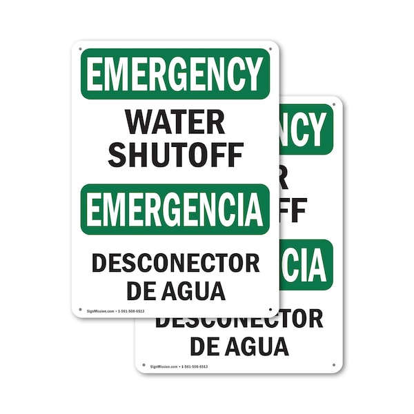 Water Shutoff Bilingual, 18 in W x Rectangle, Plastic