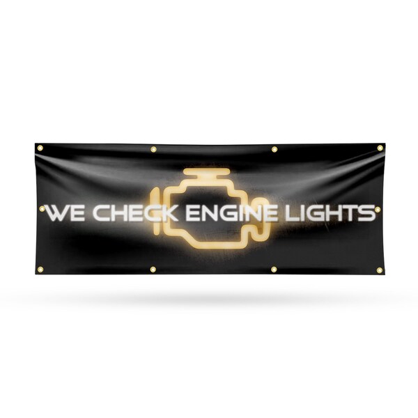 We Check Engine Lights, 36 Inch x 96 Inch, Vinyl Banner