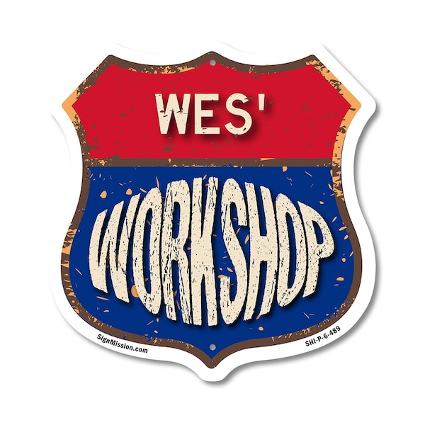 Add a Fun, Personalized Touch to Your Workshop with SignMission's Custom Shield-Shaped Signs Make your Workshop stand out with a sign that's not just eye-catching, but also full of personality! Our shield-shaped signs are the perfect way to add a touch of fun and style to your space. Featuring your name and a sleek, polished design, these signs are crafted to bring a modern, professional vibe to any Workshop, workshop, or man cave. With their bold look and durable commercial-grade plastic construction, they'll grab attention and give your space that extra bit of flair for years to come. Bring Modern Durability to Your Workshop Our shield-shaped signs aren't just stylish-they're designed with long-lasting, commercial-grade plastic that ensures both a sleek finish and unbeatable durability. Perfect for any indoor or outdoor space, these signs are resistant to cracking, fading, and weather damage. They come with pre-drilled holes for easy mounting, so you can display them effortlessly wherever they look best. Give your Workshop a polished and timeless appeal with a sign that combines charm and toughness. Our shield-shaped signs are expertly crafted to bring both style and resilience to your space while featuring your personalized touch.