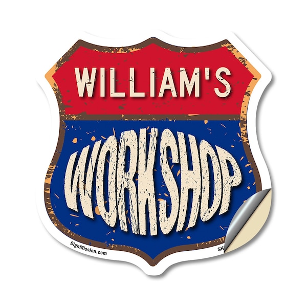 Add a Fun, Personalized Touch to Your Workshop with SignMission's Custom Shield-Shaped Vinyl Decals Make your Workshop stand out with a decal that's not just eye-catching, but also full of personality! Our shield-shaped vinyl decals are the perfect way to add a touch of fun and style to your space. Featuring your name and a sleek, bold design, these decals bring a modern, professional vibe to any Workshop, workshop, or man cave. With their vibrant look and high-quality vinyl construction, they'll grab attention and give your space that extra bit of flair for years to come. Bring Durable Style to Your Workshop Our shield-shaped decals are designed with premium 3M UV-protected, weather-resistant vinyl to ensure a long-lasting finish. Perfect for indoor and outdoor use, these decals are resistant to fading, cracking, and peeling. With an easy peel-and-stick application, you can quickly add your personalized touch to walls, doors, windows, or toolboxes. Wherever you place it, this decal adds character and charm that will stand the test of time.