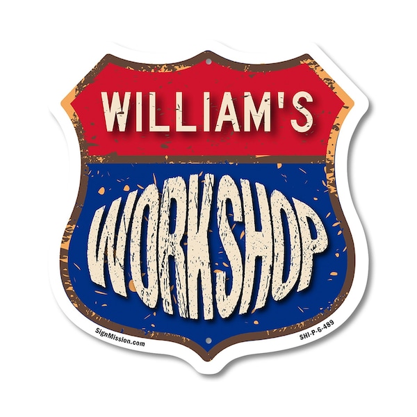 Add a Fun, Personalized Touch to Your Workshop with SignMission's Custom Shield-Shaped Signs Make your Workshop stand out with a sign that's not just eye-catching, but also full of personality! Our shield-shaped signs are the perfect way to add a touch of fun and style to your space. Featuring your name and a sleek, polished design, these signs are crafted to bring a modern, professional vibe to any Workshop, workshop, or man cave. With their bold look and durable commercial-grade plastic construction, they'll grab attention and give your space that extra bit of flair for years to come. Bring Modern Durability to Your Workshop Our shield-shaped signs aren't just stylish-they're designed with long-lasting, commercial-grade plastic that ensures both a sleek finish and unbeatable durability. Perfect for any indoor or outdoor space, these signs are resistant to cracking, fading, and weather damage. They come with pre-drilled holes for easy mounting, so you can display them effortlessly wherever they look best. Give your Workshop a polished and timeless appeal with a sign that combines charm and toughness. Our shield-shaped signs are expertly crafted to bring both style and resilience to your space while featuring your personalized touch.