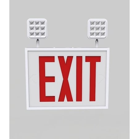 Exit Combo | Steel | Chicago Compliant | Style 1 | White Color | Single Facing | Red Lettering | 650