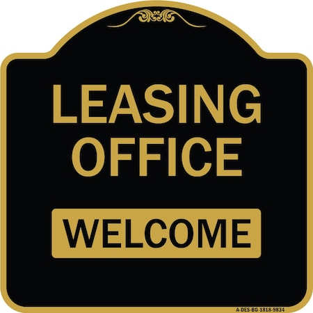 Designer Series-Leasing Office Welcome Black & Gold Heavy-Gauge Aluminum, 18" x 18", BG-1818-9834