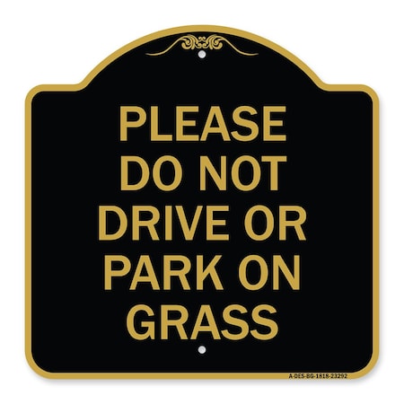 Please Do Not Drive or Park on Grass, Black & Gold Aluminum Sign, 18" x 18", BG-1818-23292