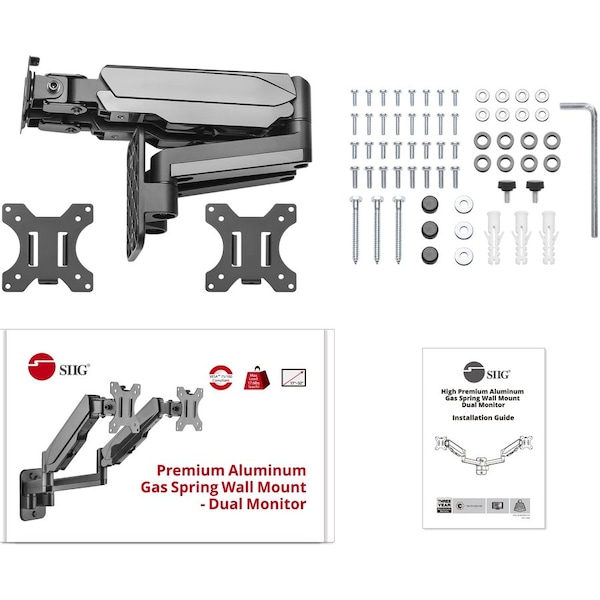 High Premium Aluminum Gas Spring Wall Mount - Dual Monitor, Installation Kit, Installation Guide