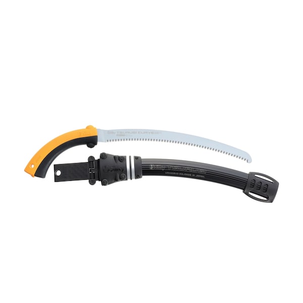 13" Curved blade handsaw with 8.5 teeth per inch. Silky has taken the unique design of the straight Tsurugi and tweaked it just a bit in shape and size. The result is a much more aggressive blade in popular sizes which will still fit into tight crotches without damage to opposing limbs.