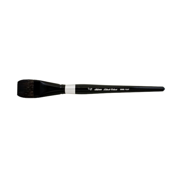 The Silver Brush Black Velvet brushes were created for watercolor artists and skilled hobbyists. Each Black Velvet brush is soft enough to add color without disturbing previous layers but firm enough to lift color when needed. Silver Brush Black Velvet professional watercolor brushes are expertly crafted with a luxurious blend of squirrel hair and black synthetic fibers. Each brush has a short handle that is finished with sophisticated black lacquer. Artists prefer to use the 3008S square wash brush for backgrounds, leaves, and landscapes. Sizes 1/4'' to 1'' have beveled, acrylic handles for scraping, while sizes 1 1/4'' to 1 1/2'' have wooden handles. Silver Brush Black Velvet brushes are best paired with watercolor. Each brush will hold the right amount of color, giving you more time to focus on your masterpiece. Watch your ethereal creations come to life with Silver Brush premium-quality brushes.