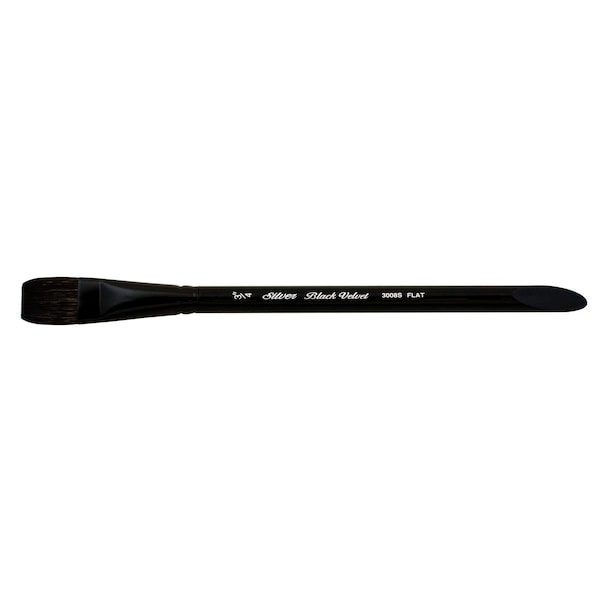 The Silver Brush Black Velvet brushes were created for watercolor artists and skilled hobbyists. Each Black Velvet brush is soft enough to add color without disturbing previous layers but firm enough to lift color when needed. Silver Brush Black Velvet professional watercolor brushes are expertly crafted with a luxurious blend of squirrel hair and black synthetic fibers. Each brush has a short handle that is finished with sophisticated black lacquer. Artists prefer to use the 3008S square wash brush for backgrounds, leaves, and landscapes. Sizes 1/4'' to 1'' have beveled, acrylic handles for scraping, while sizes 1 1/4'' to 1 1/2'' have wooden handles. Silver Brush Black Velvet brushes are best paired with watercolor. Each brush will hold the right amount of color, giving you more time to focus on your masterpiece. Watch your ethereal creations come to life with Silver Brush premium-quality brushes.