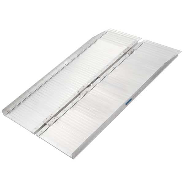 Wheelchair Ramp, Load Capacity 600 lb, Aluminum Material, 8 in Maximum Rise, 4 ft Extended Length, 2 1/2 ft Usable Width, 4 ft Retracted Length, ADA Standards, Steel Security Pins Includes