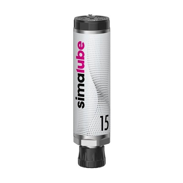 Single Point Lubricator; Gas Powered Type; Electrochemical Drive Mechanism; 1/4 in. RC; 15 CC Capacity; Simalube SL01; Grease; 1 To 12 Months; 5 Bar; -30 To 120 Deg C; Refillable Cartridge