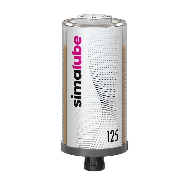 Single Point Lubricator; Gas Powered Type; Electrochemical Drive Mechanism; 1/4 in. RC; 125 CC Capacity; Simalube SL14; Oil; 1 To 12 Months; 5 Bar; -10 To 90 Deg C; Refillable Cartridge