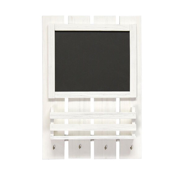 Chalkboard Sign with Key Holder Hooks & Mail Storage, White Wash
