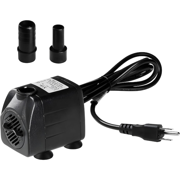 Simple Deluxe 160GPH Submersible Pump with Adjustable Flow, 2 Nozzle Sizes, Max Lift Height 4.3ft, for Aquariums, Fish Tank, Pond Fountain, Hydroponics, Indoor Water Features