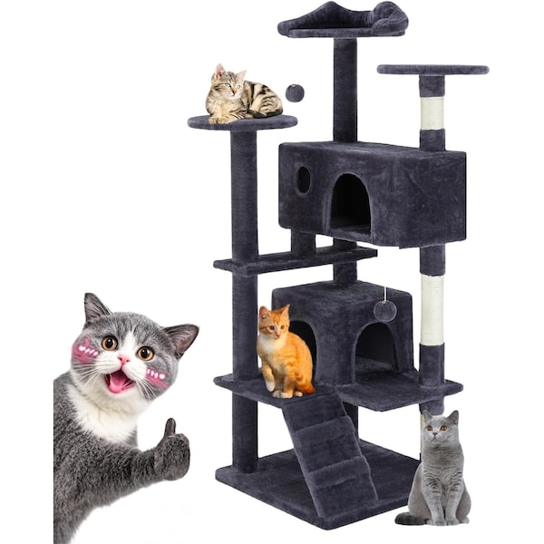 54 Inches Cat Tree Tower, Cat Tree Tower Condo with Scratching Post for Cats House Play, Multi-Level Furniture Activity Center for Pet, Detachable Cat Tower, Dark Gray
