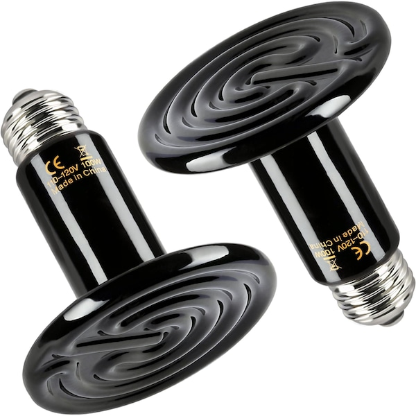 75MM 100W Ceramic Heat Emitter Reptile Heat Lamp Bulb No Light Emitting Brooder Coop Heater, 2PK