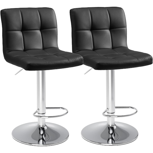 Bar Stools Set of 2, PU Leather Adjustable Swivel Barstools, Armless Adjustable Kitchen Counter Height Bar Stools, Thickened Seat Cushion Square Island Chairs with Back, Black