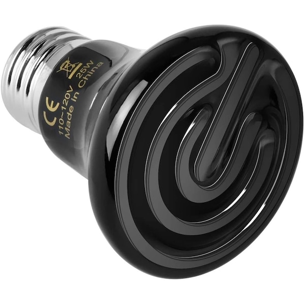 Ceramic Heat Emitter Reptile Heat Lamp Bulb No Light Emitting Brooder Coop Heater, 25WMini, Black