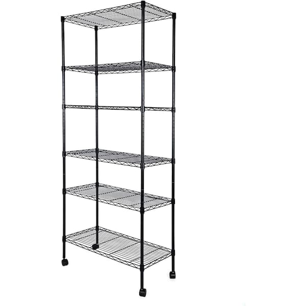 HealSmart Heavy Duty 6-Tier Shelving Units Adjustable, Wire Shelf with 1000 lbs Capacity 250 per Shelf, 77cm D x 36.5cm W x 21.5cm H, Black, 6 Levels, Storage Shelf with Wheels & Leveling Feet