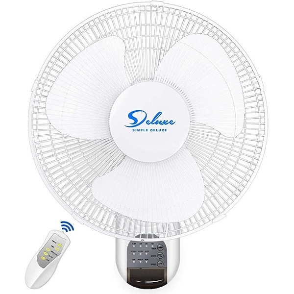 Simple Deluxe Heavy Duty Quiet Stainless 16-Inch Digital Wall Mount Oscillating Fan w/ Remote
