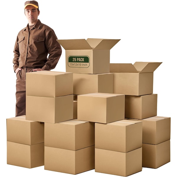Simple Deluxe 25 Pack Moving Boxes 24x18'x12', Corrugated Cardboard Box for Shipping, Mailing, Packing, Packaging and Storagem, Large, Brown