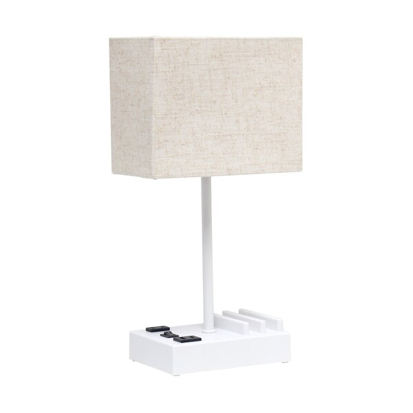 153 Rectangular MultiUse Table Lamp with 2 USB Ports and Charging Outlet with Beige Shade, White (Discontinued)