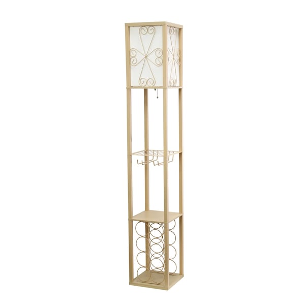 Floor Lamp Etagere Organizer Storage Shelf and Wine Rack, Tan (Discontinued)