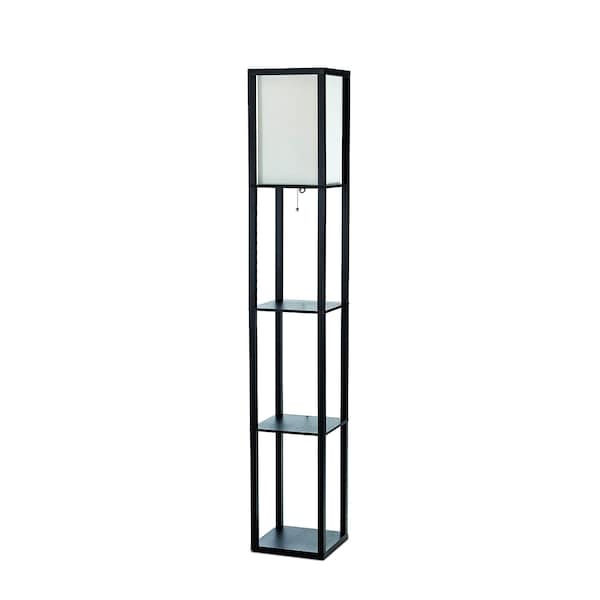 Floor Lamp Etagere Organizer Storage Shelf with Linen Shade, Black (Discontinued)