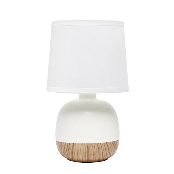 What better way to combine classic favorites with today's trendy décor? Textures, prints, and more! A rounded ceramic base is enhanced by a strip of wooden print across the lower portion of the base. With a fabric shade finalizing the look, we're sure this piece will not only illuminate your space, but definitely integrate some modern vibes in your room of choice as well.