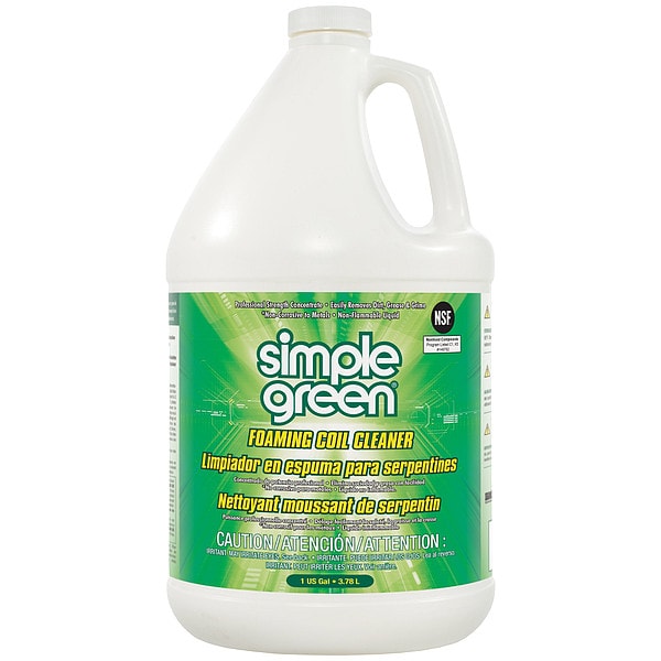 Coil Cleaner, Liquid, Size 1 gal, Color Clear, Application Blowers, Condenser Coils, Evaporator Coils, Fan Blades, Freezers, Grills, Heat Exchangers, Air Conditioners, Refrigerators, Condensate Pans, Ventilation Equipment, Characteristics Self-Rinsing Formula, Non-Toxic Yes, Non-Flammable Yes, Non-Conductive Yes, Biodegradable Biodegradable, Non-Abrasive Yes, Acidic/Alkaline Alkaline, Non-Caustic Yes, Standards NSF C1 and P1