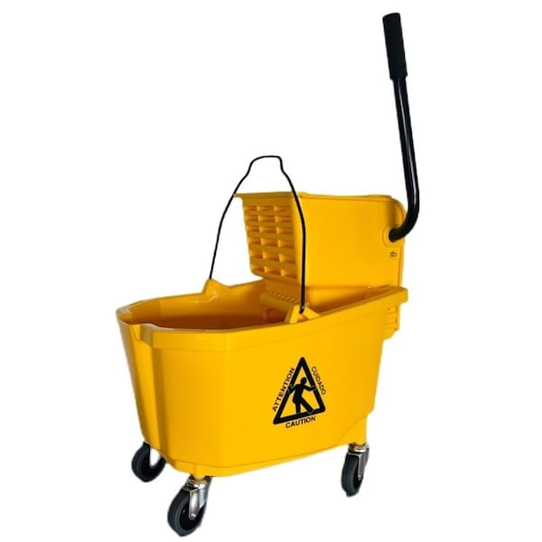 9130 Mop Bucket with Ringer, 32 qt Capacity, Plastic Bucket/Pail, Plastic Wringer, Yellow