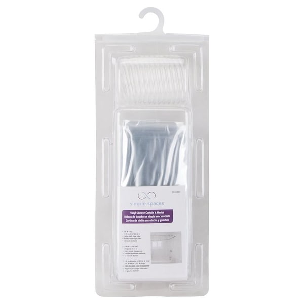 Shower Curtain with Hook, PVC/Vinyl, Clear, Clear