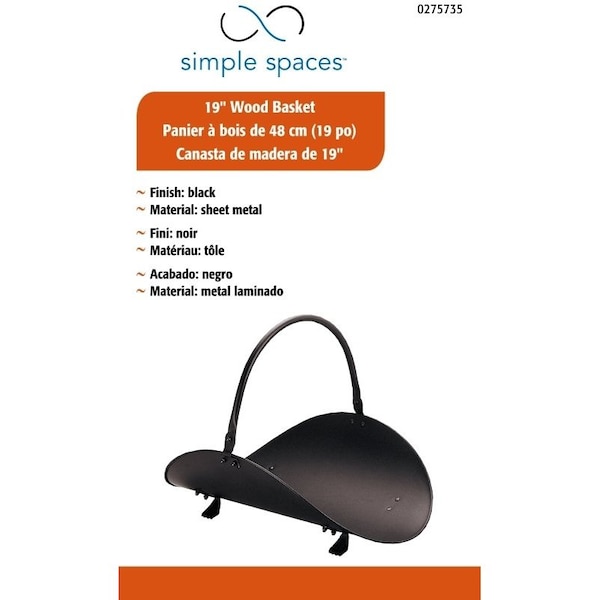 Simple Spaces B19000BK-T3L Basket Holder, Metal Base