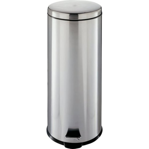 Trash Can, 793 gal Capacity, PlasticStainless SteelSteel, Silver, Flat Lid Closure