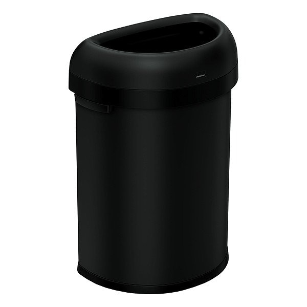 21 gal Half-Round Trash Can, Black, None, Steel, Not Applicable