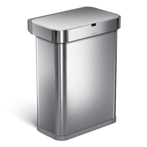 58 Liter Rectangular Voice and Motion Sensor Automatic Kitchen Trash Can, Brushed Stainless Steel (Discontinued)