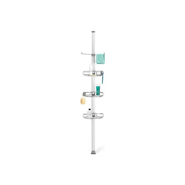 Simplehuman bt1062 the simplehuman stainless steel provides a durable, space-efficient storage solution for virtually any shower or bath. Its reinforced aluminum pole with high-compression spring fits securely between your floor and ceiling extends 6 to 9 feet. Three adjustable wire-frame shelves slide up and down the aluminum pole to hold all your shower essentials. Made from completely corrosion-resistant materials.