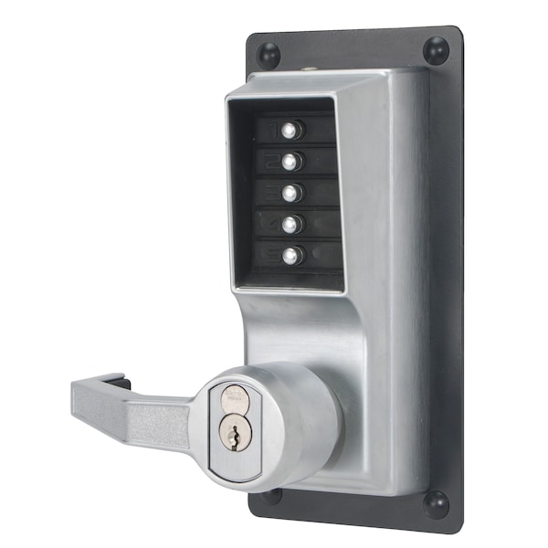 Kaba Right Hand Mechanical Pushbutton Exit Trim Lever Lock, Key Override; Best Prep Satin Chrome