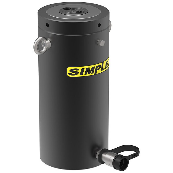 Lock Nut Hydraulic Ram, Single Acting, Lock Nut, Nominal Capacity 105 ton, Stroke Length 9 27/32 in, Nominal Stroke Length 10 in, Effective Push Area 20.57 sq in, Max. Pressure 10,150 psi, Oil Capacity Push 202.49 cu in, Retracted Height 15.39 in, Extended Height 25.24 in, Outside Dia. 6.69 in, Plunger Dia. 0.27 in, Plunger Thread Size M130 x 6, Series SIMPLEX