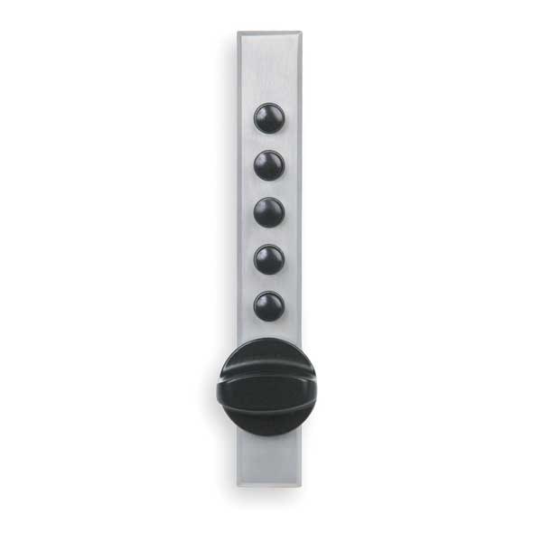 Cabinet Lock, Handle Type Knob, Door Thickness 14 to 20 Gauge Metal, Deadbolt Latch Type, No Trim Plate, 1 in Bolt Throw, Keypad 5 Pushbutton, Vandal Resistant, Hand Nonhanded, Finish Satin Chrome, Case Material Cast Metal, Series 9600, Outside Height 5 1/4 in, Outside Width 3/4 in, Outside Depth 3/4 in, Latch Length 1 in, Max. User Codes 1, Includes Installation Manual, Template, Reference Guide, Operations Manual, Hardware