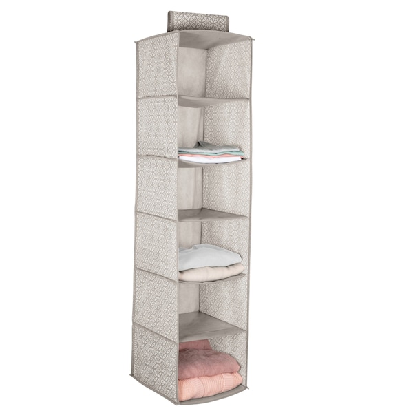 Simplify's 6 Shelf Boho Non-woven Organizer is made of 100% Polypropylene Nonwoven breathable Material that acts as instant organization for your closet or room. With 6 full length board shelves that prevent bowing and to allow easy access to all of your garments and belongings. Sturdy, durable fabric and cardboard liner helps maintain shape of the closet organizer. Easy installation hangs into any closet rods with it's strong hook and loop closure, and when not in use, simply fold it up and put in storage, saving space.