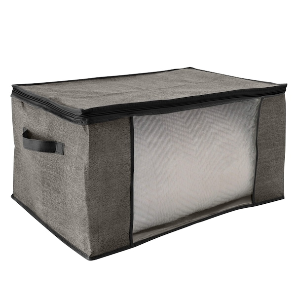 Simplify's Non-woven Blanket Bag is made of 100% PP Nonwoven breathable Material that keeps your blankets and other belongings safe. Perfect storage solution for off-season items such as blankets, garments and more while also protecting them against dust and damage thanks to it's full zippered top. Durable handles allows for easy carrying and see through window on front allows you to look inside of the bag. Bag helps eliminate odors to help linens stay fresh and clean. Flexible and adjustable designs makes it easy to fit in tight spaces to store.