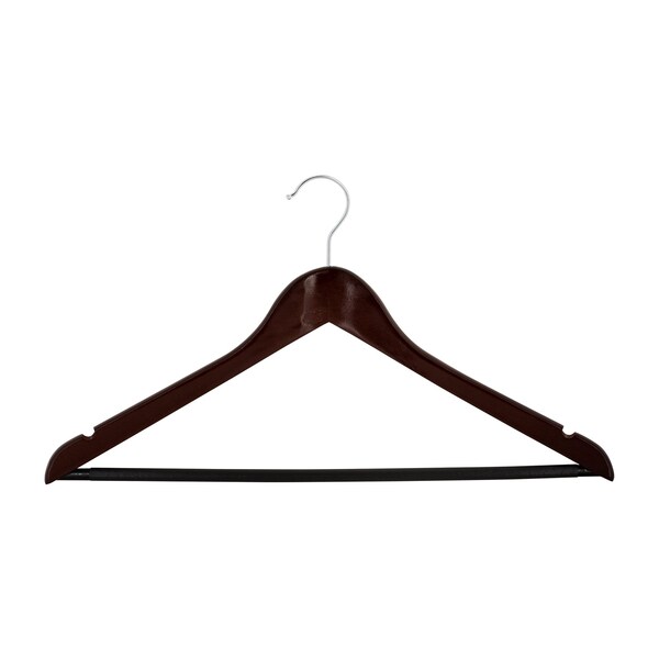 These Simplify Suit Hangers made of 100% natural wood are perfect for holding suits, folded pants, shirts and more. The two hooks provide a better hold, while the wood construction gives a quality look and durability. Save space in your closets by hanging and hooking items on Simplify Wood Suit Hangers.