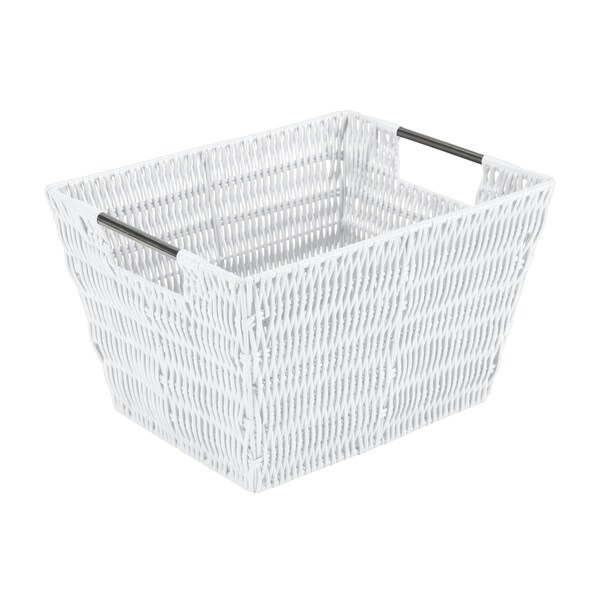 Organize and create storage in your home with the Simplify Rattan Tote Basket Collection. Simplify's Rattan Tote is a PE Basket with an iron frame and 2 sturdy stainless steel carry handles. It is strong anddurableprolonging it's life, and it's lightweight design makes it easy to lift and carry. Fits anyhome decor with it's wide selection of colors. Store your household belongings and organize space with these stylish baskets. Stack them together in a corner of your craft area, home office or Dorm to keep your essentials close at hand in an organized manner.