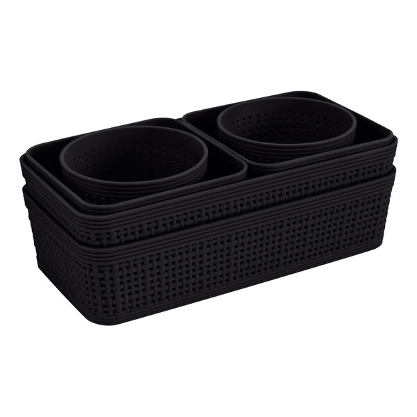 - •Set Includes: 2 Square Baskets-5"x 5"x 2.5", 2 Round Baskets- 4"x 4"x 2.5", 2 Rectangular Baskets- 10"x 5"x 2.5"