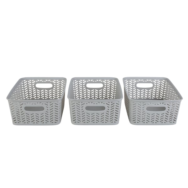 Simplify's Herringbone Storage Bin has a unique wicker design and is made of sturdy polypropylene plastic. 2 sturdy open handles makes it easy to carry Bin around from one place to another. It has a lightweight design and holds a multitude of items, organizing and de-cluttering homes. Wide selection of colors to fit any setting.